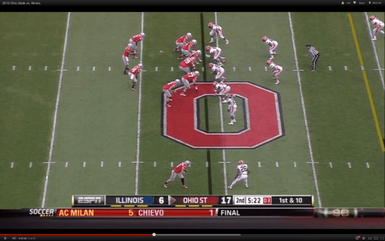 Again, the execution wasn’t perfect. But in the PS concept – the realization of the full potential available in the game of football – you don’t have to be perfect. In this example, the execution was pretty close to perfect. The only mistake I saw was an underthrow by Miller. But that was a smart toss as Smith was open by a mile. But again, the scheme had Illinois so confused that Miller could have gotten a big play by swinging the ball out to Hyde or possibly one of the 2 WRs. And he certainly had enough space with Smith to make a “SAFE” throw instead of the perfect throw. All the players involved, all of the 3D Space involved and at minimal execution. That’s the Power Spread.