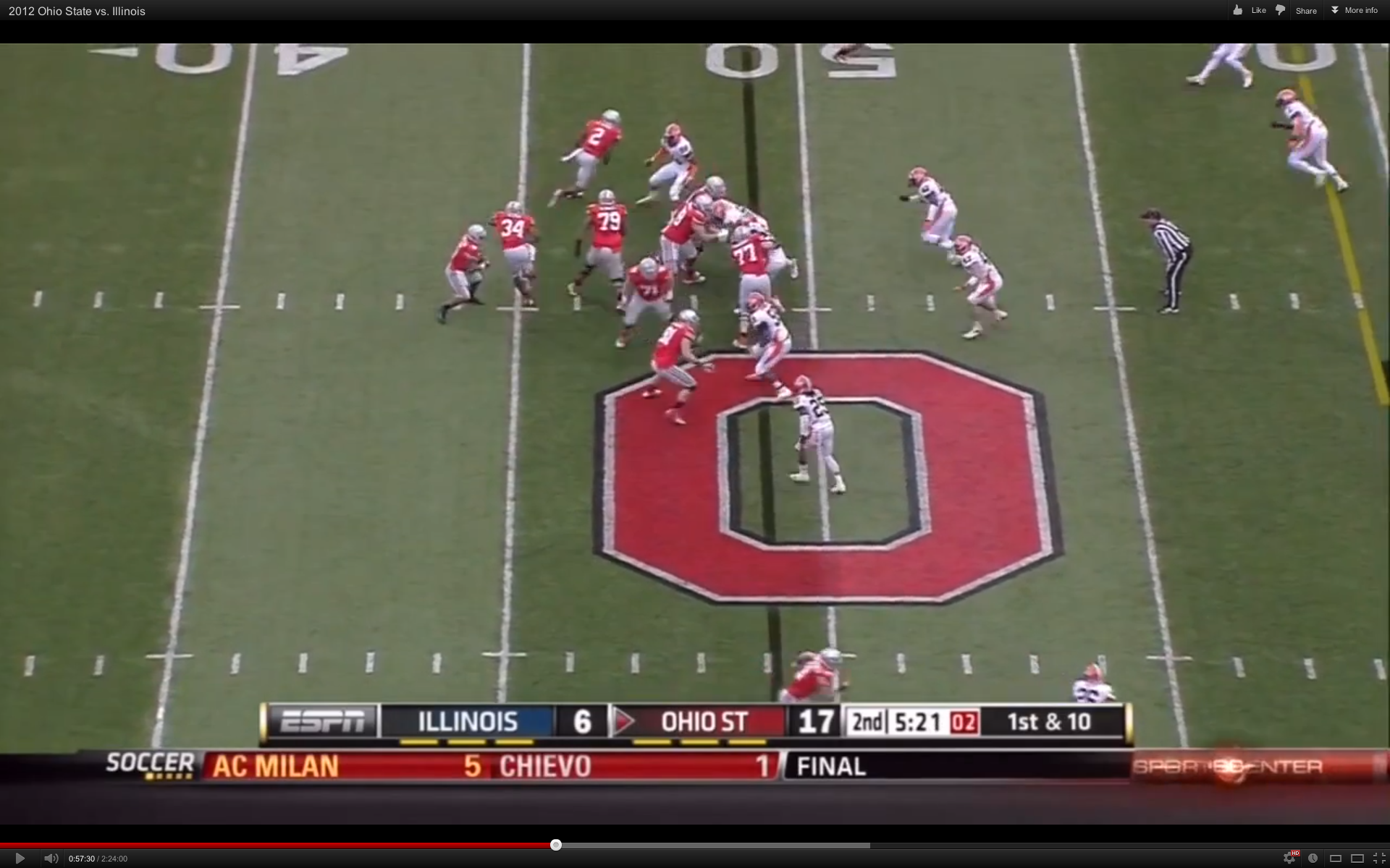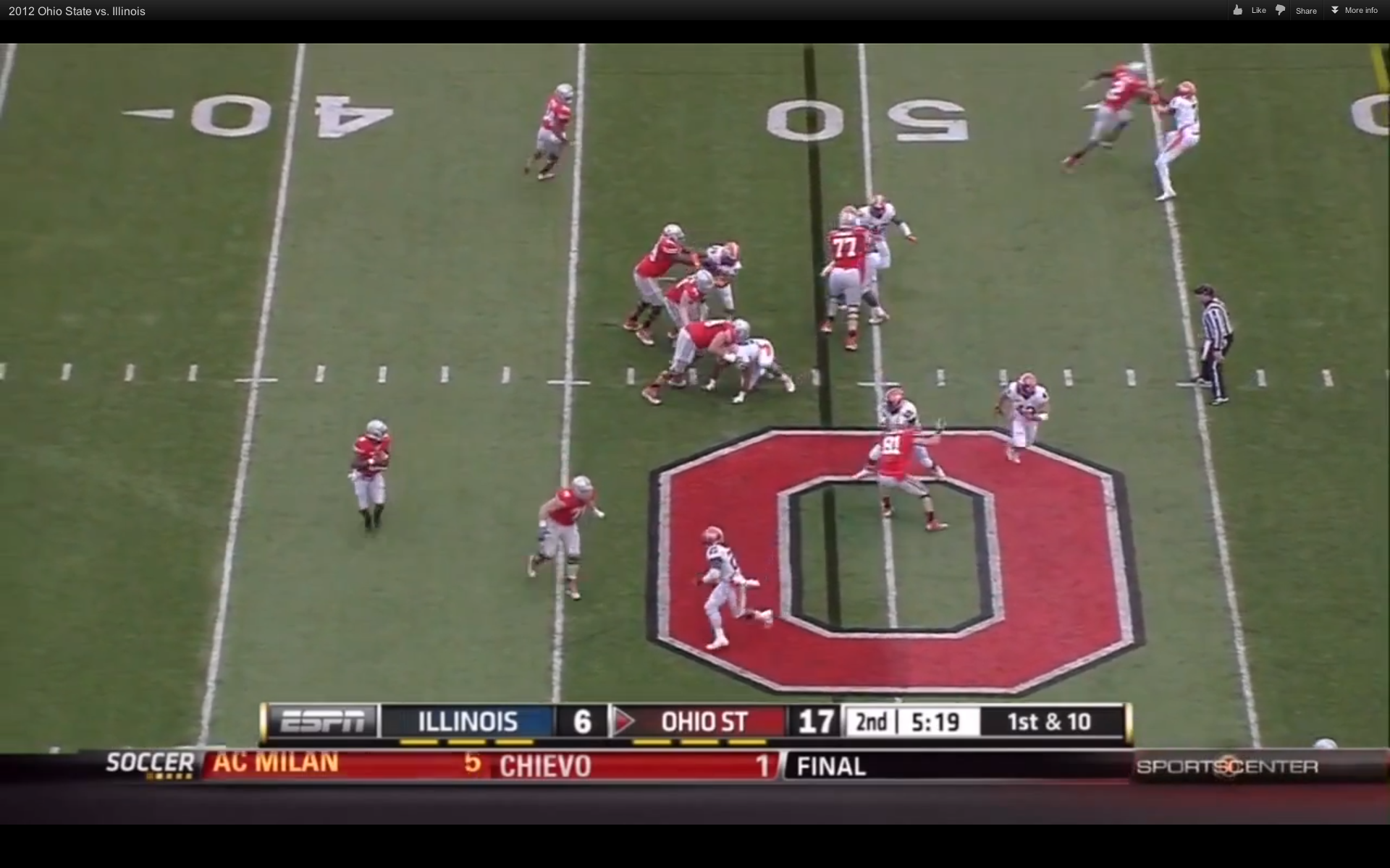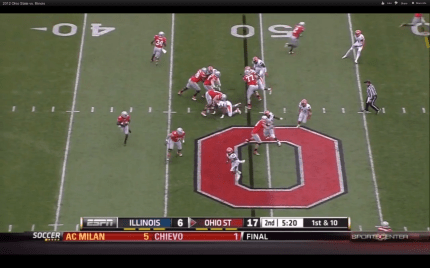 1. […] Illegal Blk penalty stymies Illinois. Orhian Johnson having a good game. Hankins and Boren too!   Play of the Week:  51 yd pass to Rod Smith down the left […]