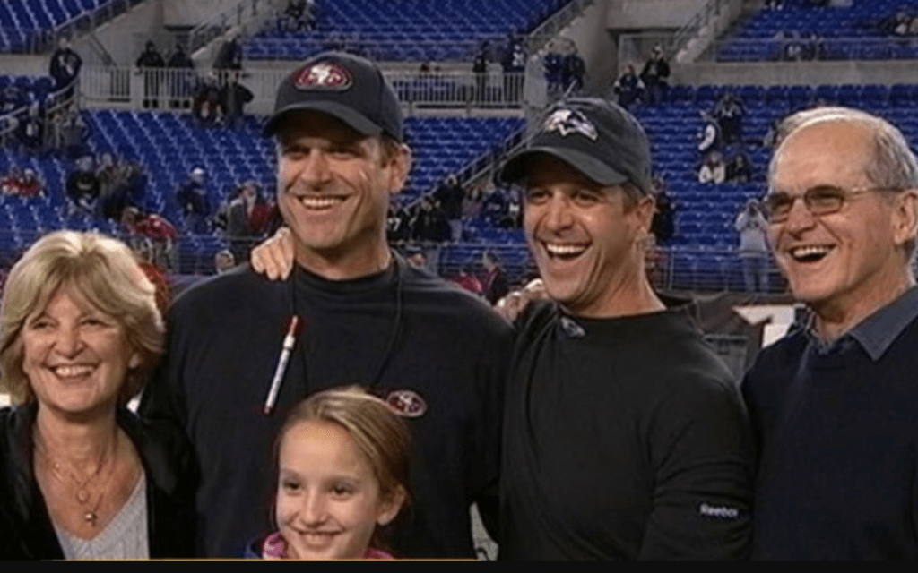 The Harbaughs have been around a long while. They have been successful as both players and coaches. Starting with the Dad – a longtime respected assistant thru the 60s & 70s turned legendary Head Coach in the 90s. Jim played for years in the NFL before finding success as a Head Coach at Stanford, the 49ers and now Michigan. John is a long time successful Head Coach of the Baltimore Ravens.